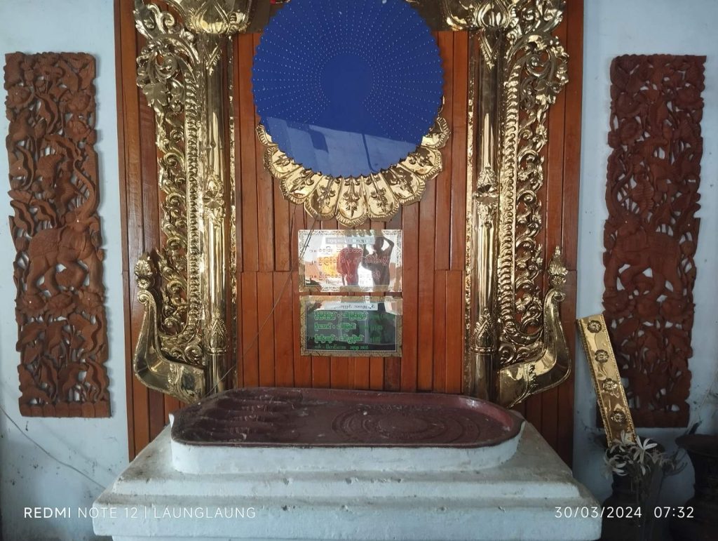 ဘုံသင်ကြီး = မြောက်ဘက်မုခ်ဝမှာရှိသည်။ | ဇမ္ဗူသပြေ = ဘုရားကြီးအင်္ဂါထောင့်မှာရှိသည်။ | |