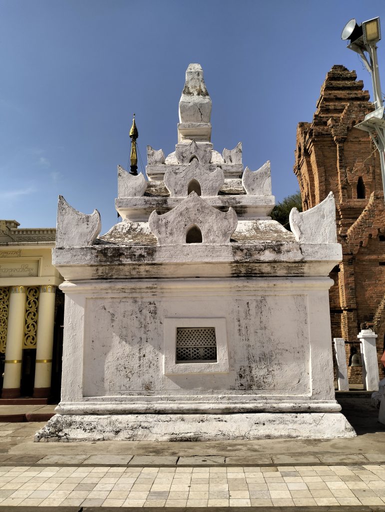 စေတီတော်ကြီး၏ ရင်ပြင်တော်လေးဘက်တွင် ပုဂံခေတ် ကွမ်းတောင်အထွတ်ဖြင့် ကြေးဂူတိုက် ( ၄) တိုက်ရှိသည်။ ထိုအထဲ၌ ဉာဏ်တော် (၁၂) ပေရှိ ရပ်တော်မူဗုဒ္ဓရုပ်ပွားတော်မြတ် (၄) ဆူရှိသည်။ ပွင့်တော်မူပြီးသော ကကုသန်၊ ကောဏာဂုံ၊ ကဿပ၊ ဂေါတမ၊ ဘုရားလေးဆူကိုညွှန်း၍ တည်ထားခဲ့သည်။ ပုဂံခေတ် ရပ်တော်မူ ဗုဒ္ဓရုပ်ပွားတော်ဟန် ပီသတင့်တယ်၍ အနုပညာအားဖြင့်လည်း ကြေးသွန်းထားသည် မဟုတ်မူဘဲ ကြေးပြားများကို အတွင်းမှ ဖောင်းထုတ် ပုံဖော်စေသည်။ “ကြေးခတ်နည်း”လက်ရာကောင်းဖြစ်သည်။